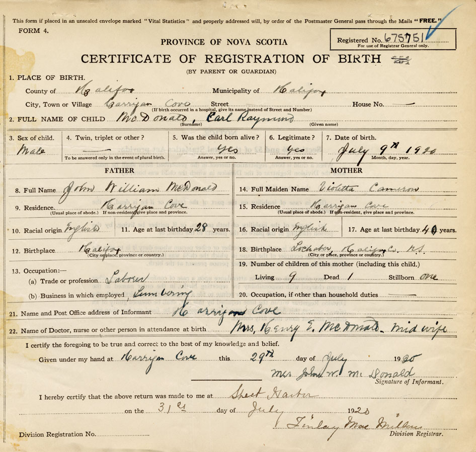 Nova Scotia Archives — https://archives.novascotia.ca/vital-statistics/birth/?ID=397032