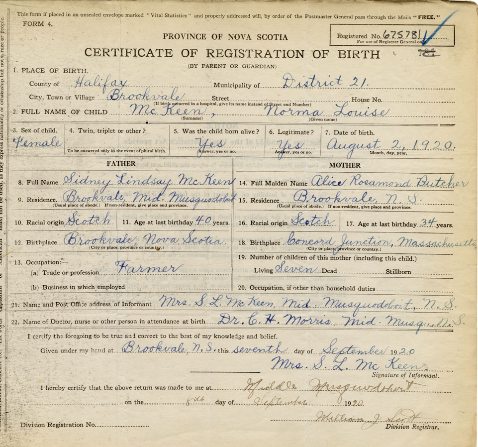 Nova Scotia Archives — https://archives.novascotia.ca/vital-statistics/birth/?ID=397062