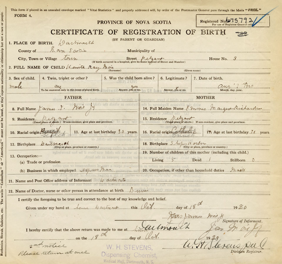 Nova Scotia Archives — https://archives.novascotia.ca/vital-statistics/birth/?ID=397073