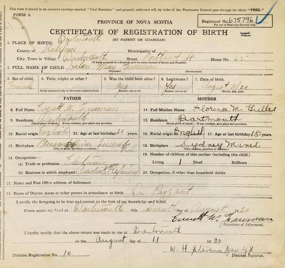 Nova Scotia Archives — https://archives.novascotia.ca/vital-statistics/birth/?ID=397077