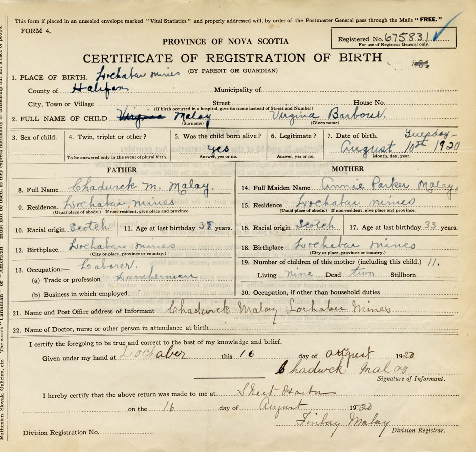 Nova Scotia Archives — https://archives.novascotia.ca/vital-statistics/birth/?ID=397112