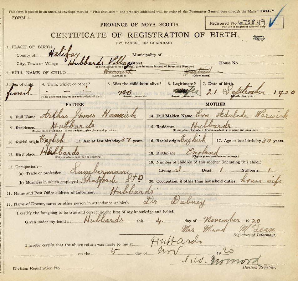 Nova Scotia Archives — https://archives.novascotia.ca/vital-statistics/birth/?ID=397130