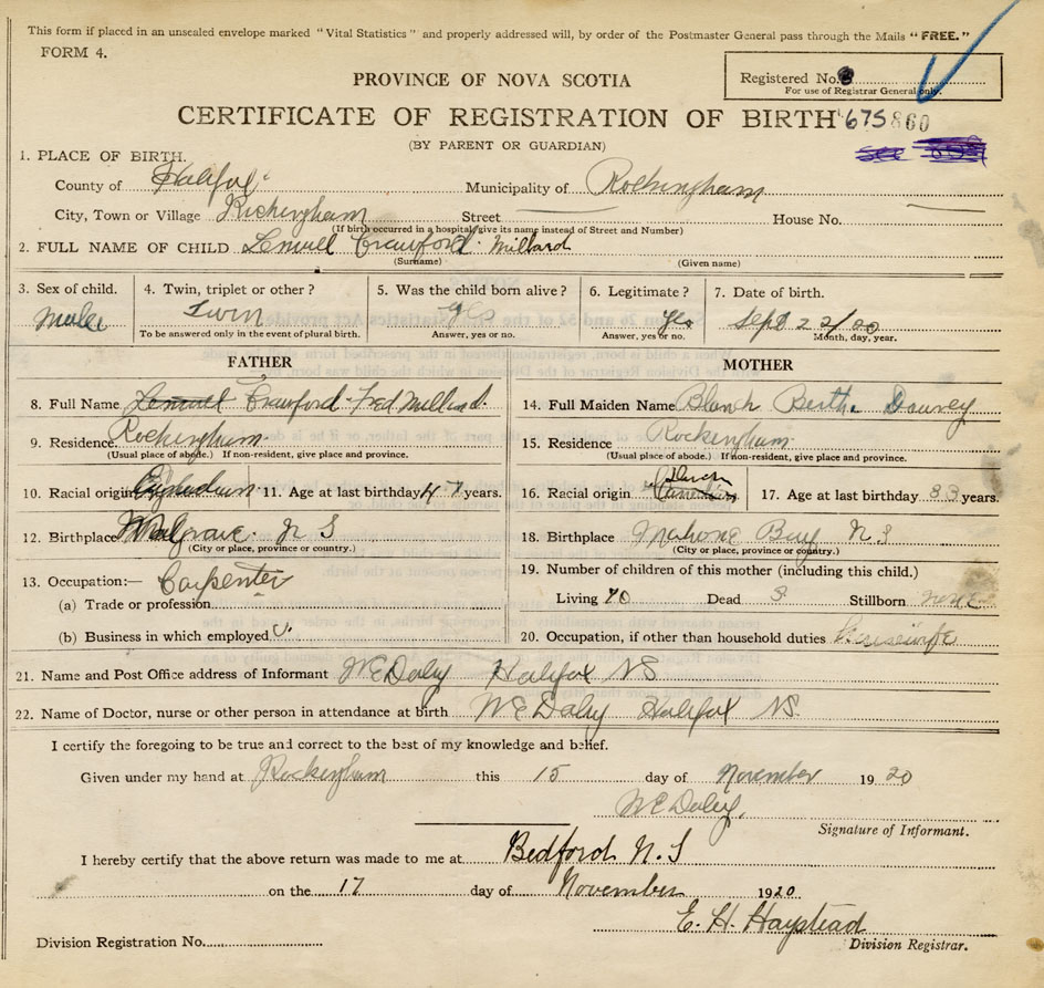 Nova Scotia Archives — https://archives.novascotia.ca/vital-statistics/birth/?ID=397141