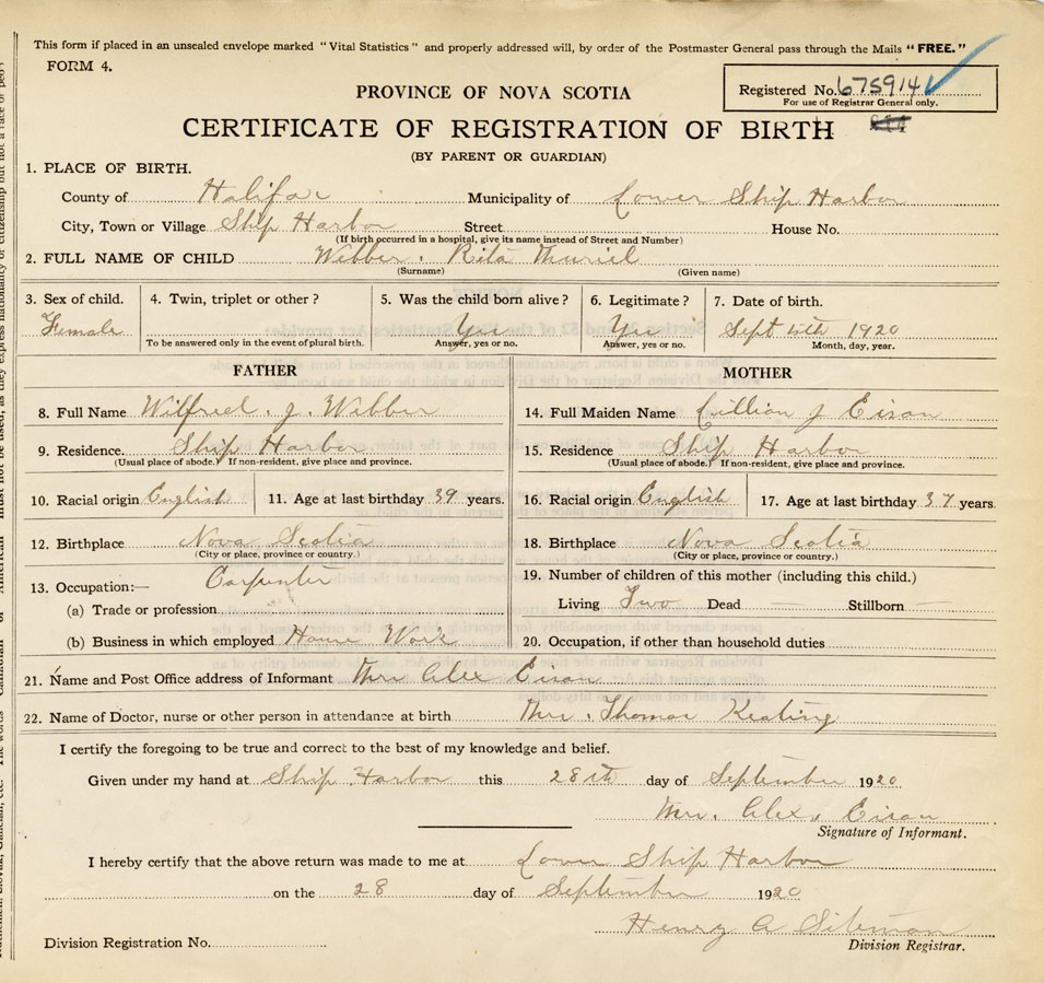 Nova Scotia Archives — https://archives.novascotia.ca/vital-statistics/birth/?ID=397195
