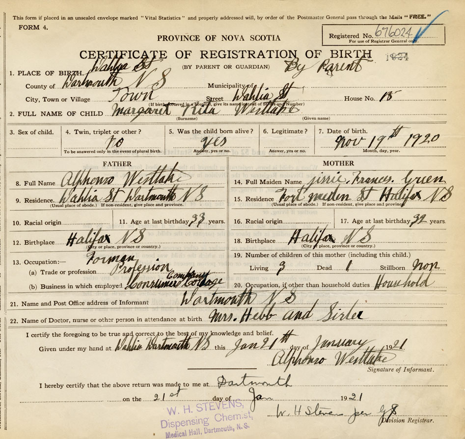 Nova Scotia Archives — https://archives.novascotia.ca/vital-statistics/birth/?ID=397304