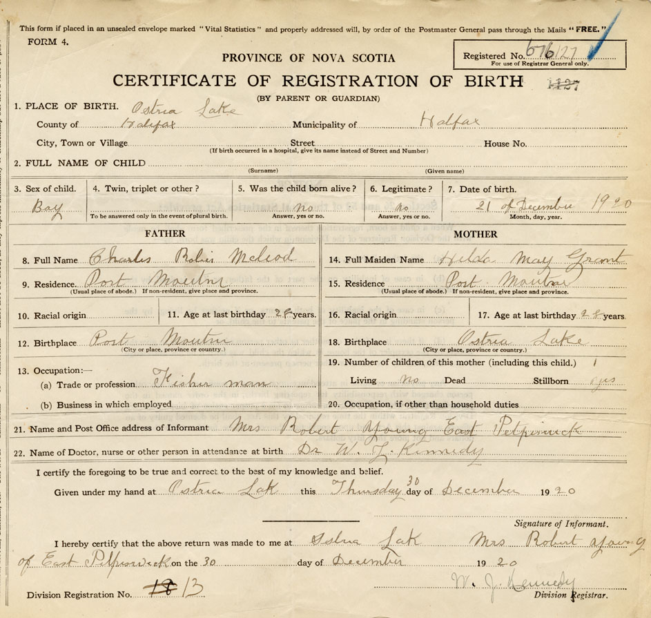 Nova Scotia Archives — https://archives.novascotia.ca/vital-statistics/birth/?ID=397406