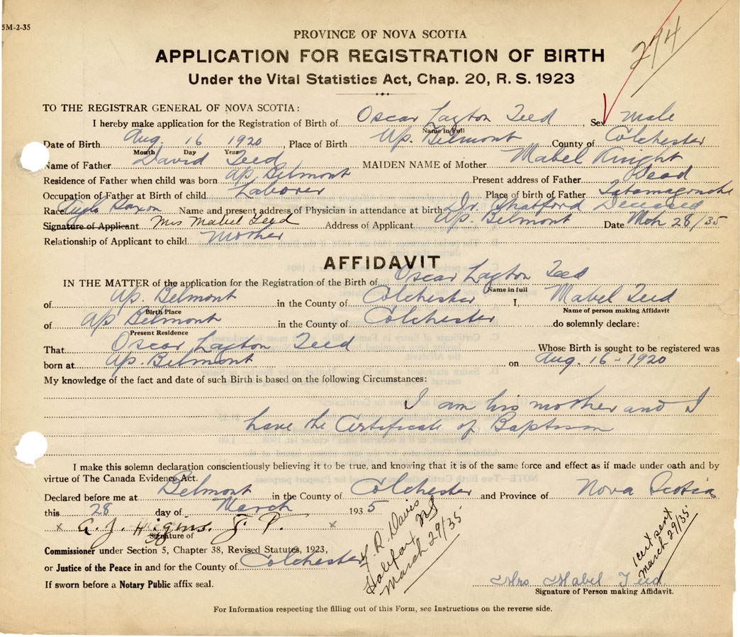 IN THE MATTER of the application for the Registration of the Birth of Oscar LaytonTeed