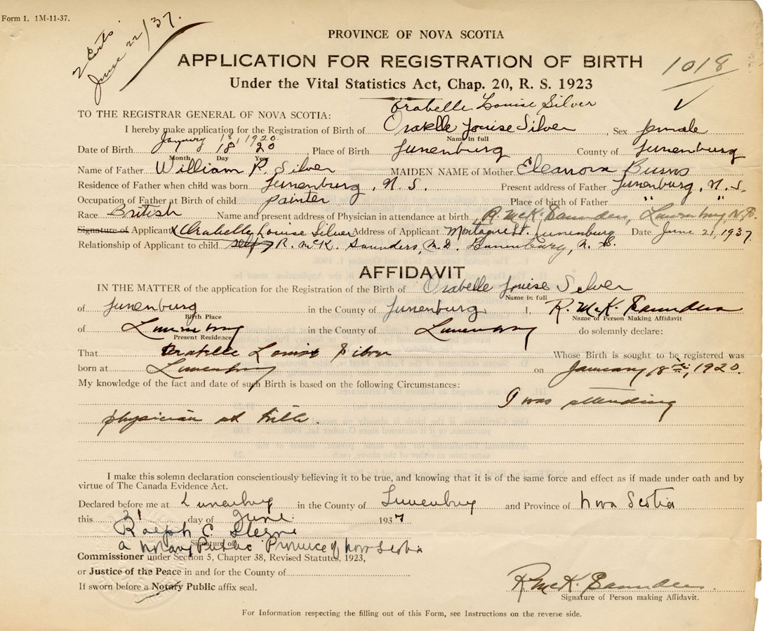 Date of Birth January 18, 1920 Place of Birth LunenburgCounty of Lunenburg
