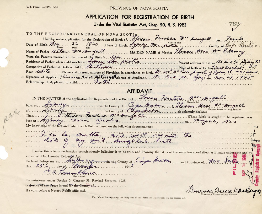Name of Father Allan MacDougall MAIDEN NAME of Mother Florence Anne MacGillivary