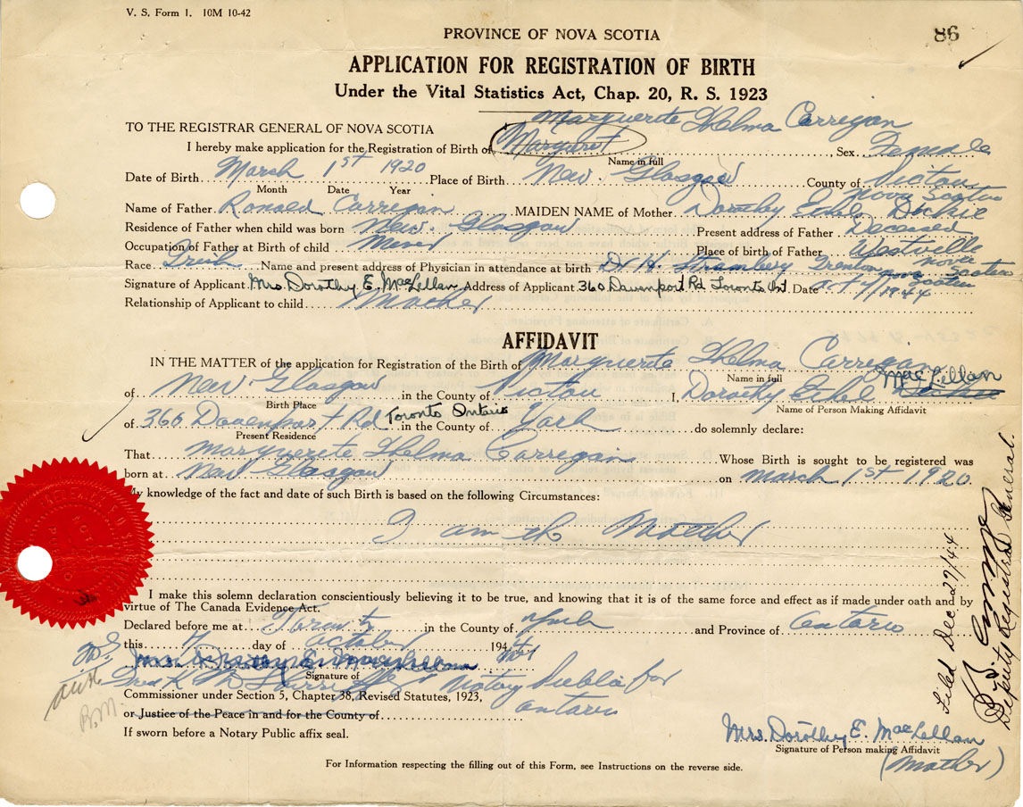 That Marguerite ThelmaCarrigan Whose Birth is sought to be registered was