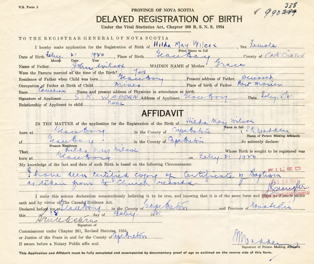 That Hilda MayWilcox Whose Birth is sought to be registered was