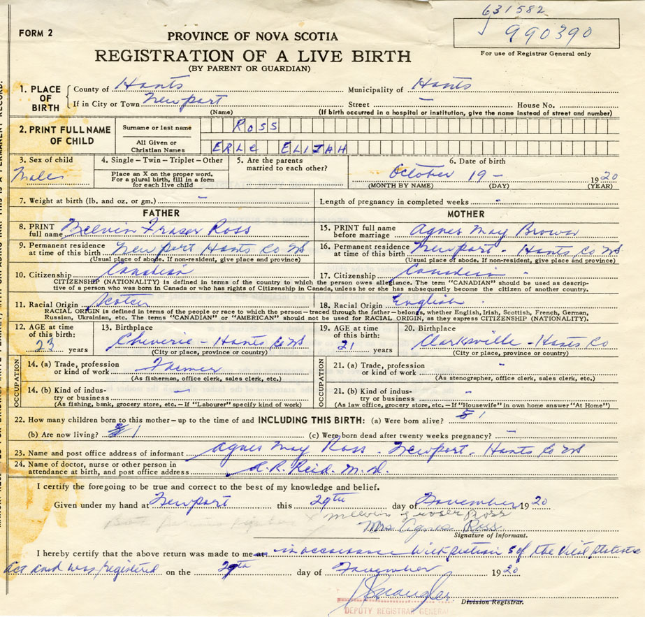 Name of Father Melvin Fraser Ross MAIDEN NAME of Mother Agnes May Brown