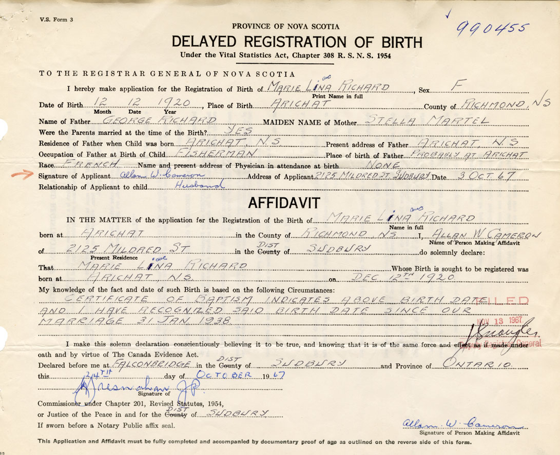 IN THE MATTER of the application for the Registration of the Birth of Marie LinaRichard