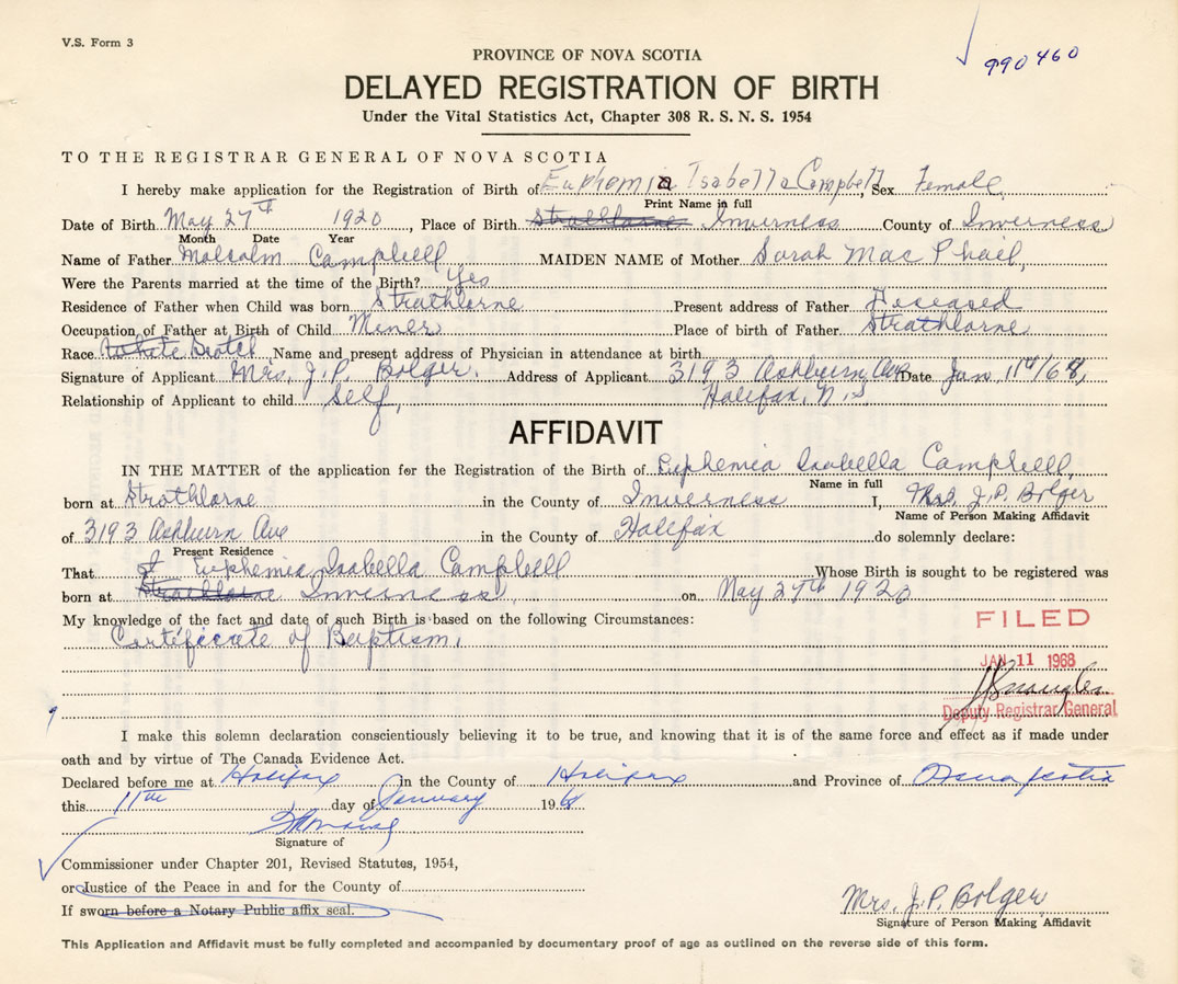 IN THE MATTER of the application for the Registration of the Birth of Euphemia IsabellaCampbell
