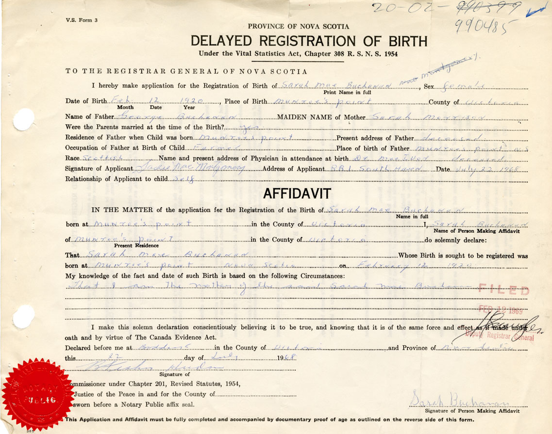 That Sarah MaeBuchanan Whose Birth is sought to be registered was