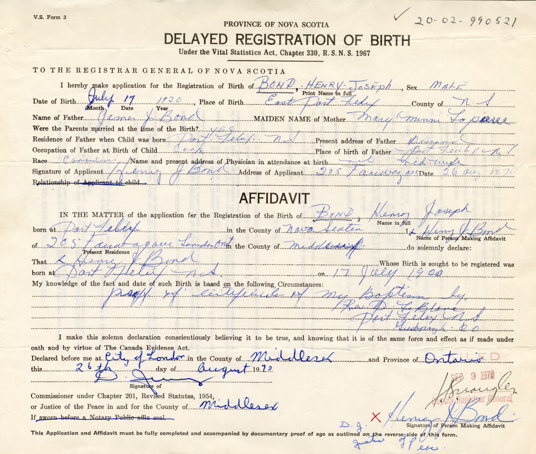 That Henry JosephBond Whose Birth is sought to be registered was