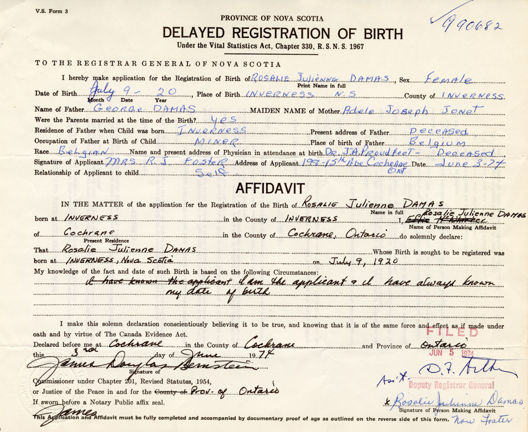 IN THE MATTER of the application for the Registration of the Birth of Rosalie JulienneDamas