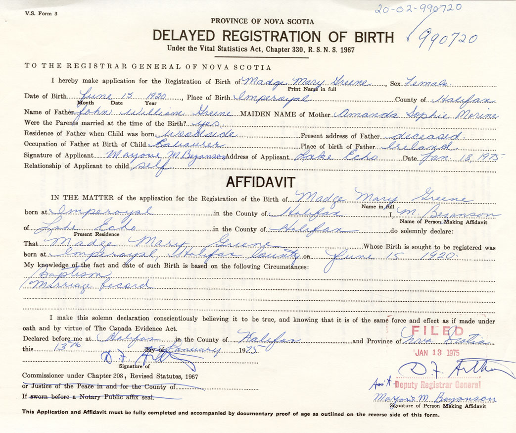 That Madge MaryGreene Whose Birth is sought to be registered was