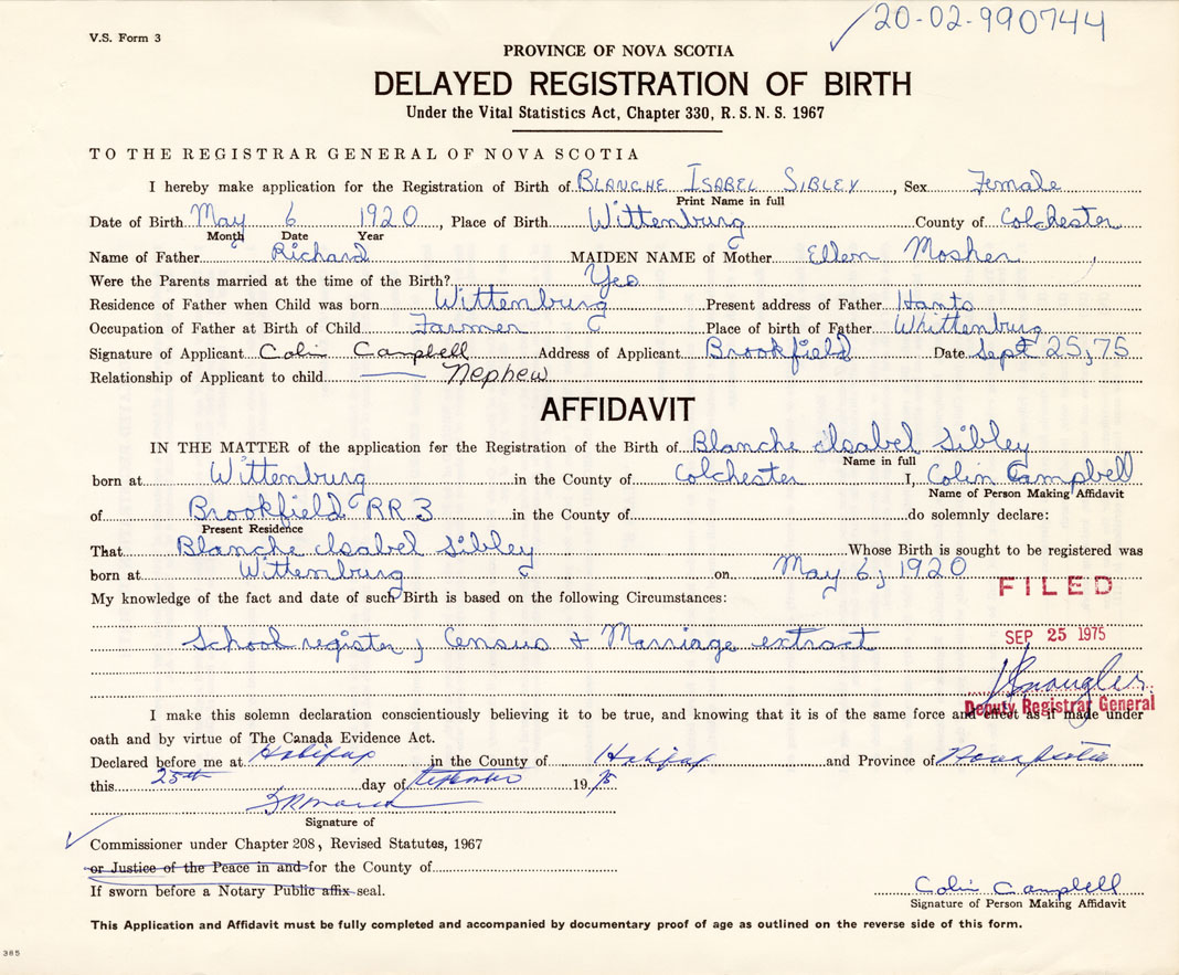 That Blanche IsabelSibley Whose Birth is sought to be registered was
