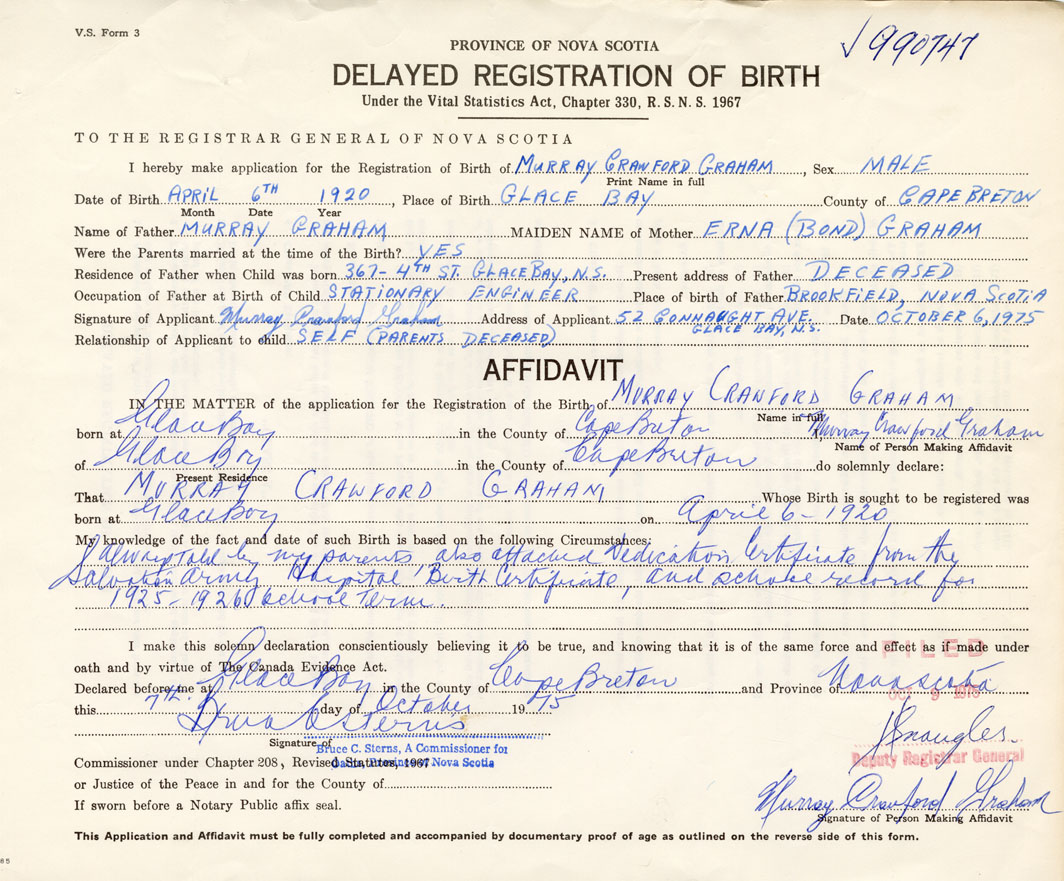 Signature of Applicant Murray Crawford Graham Address of Applicant Glace Bay Date October 6, 1975