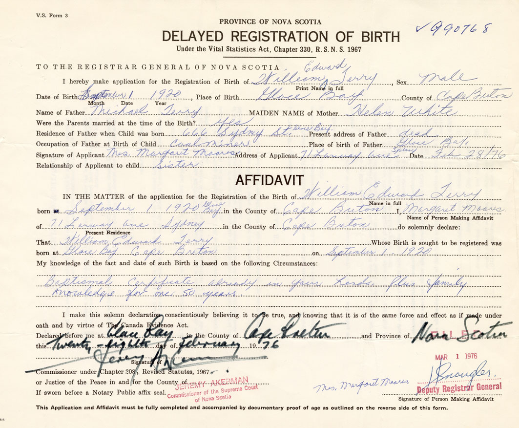 Date of Birth September 1, 1920 Place of Birth Glace BayCounty of Cape Breton