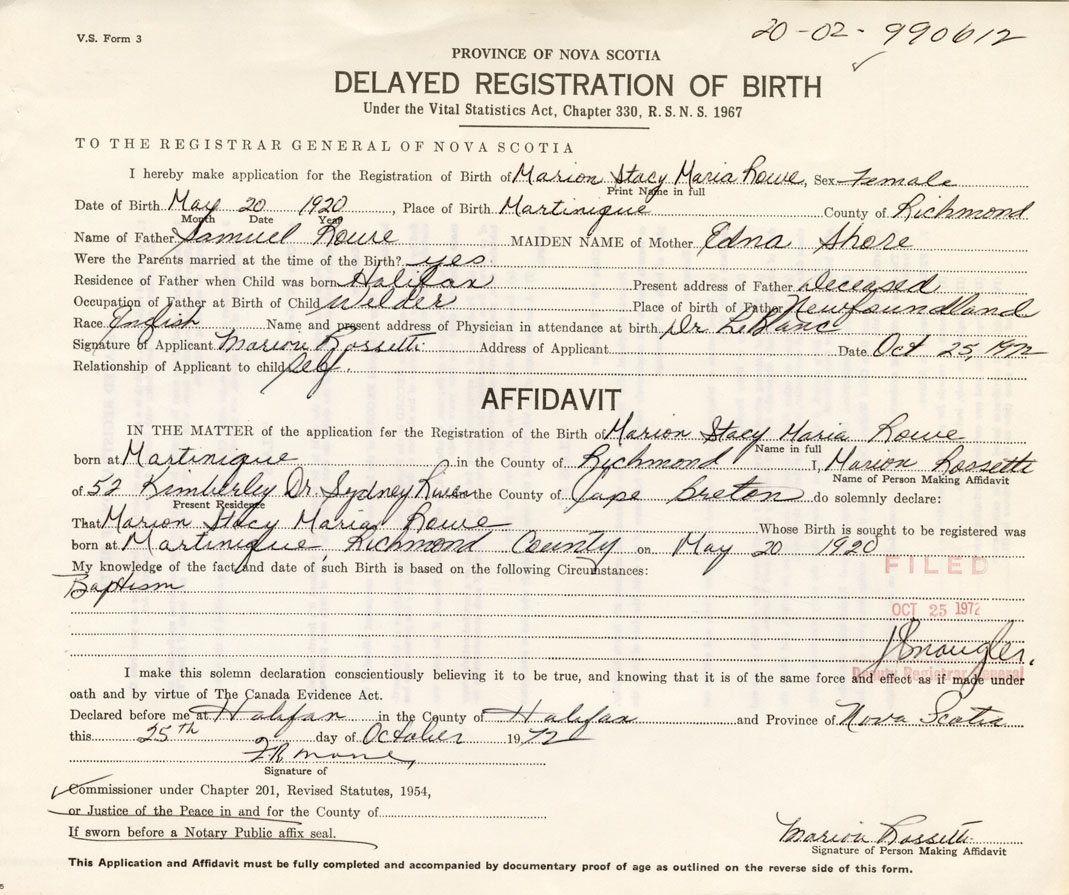 Date of Birth May 20, 1920 Place of Birth MartiniqueCounty of Richmond
