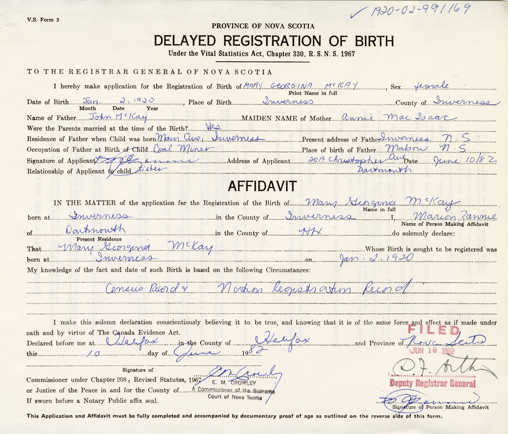IN THE MATTER of the application for the Registration of the Birth of Mary GeorginaMcKay