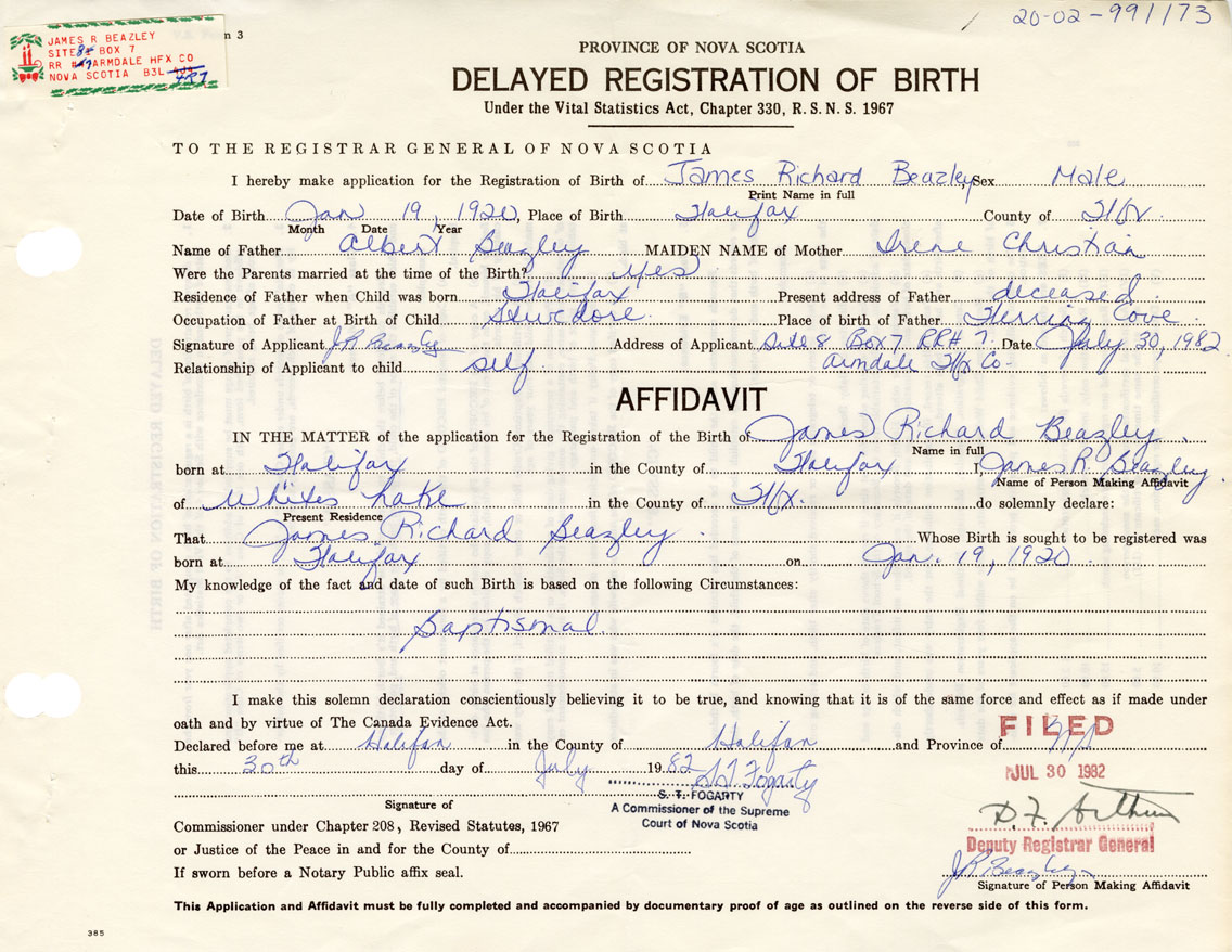 IN THE MATTER of the application for the Registration of the Birth of James RichardBeazley