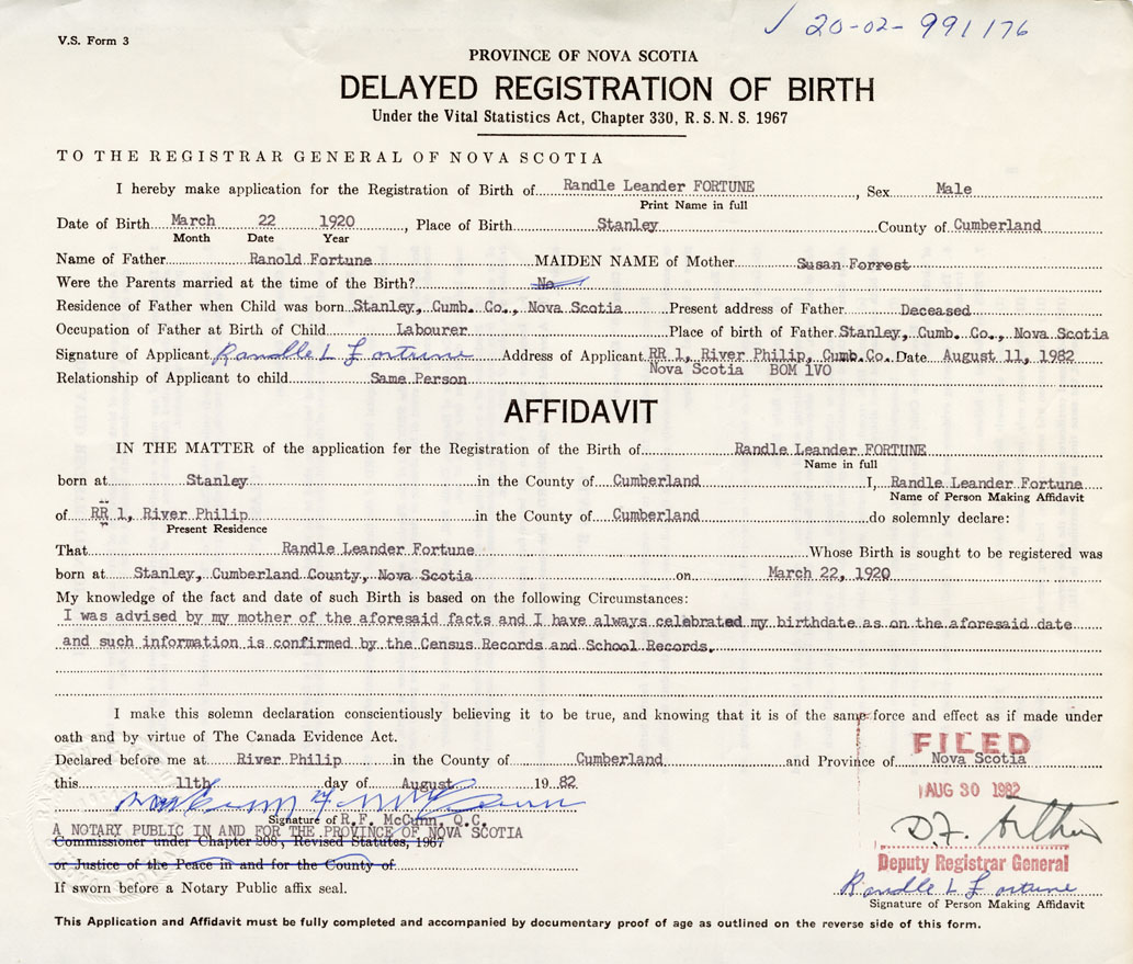That Randle LeanderFortune Whose Birth is sought to be registered was