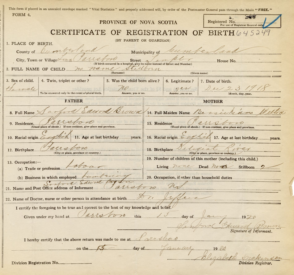 Nova Scotia Archives — https://archives.novascotia.ca/vital-statistics/birth/?ID=399115