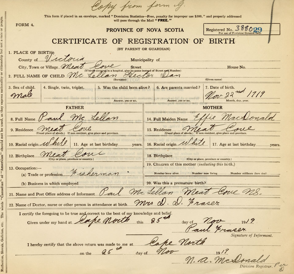 21. Name and Post Office address of Informant Paul McLellan Meat Cove