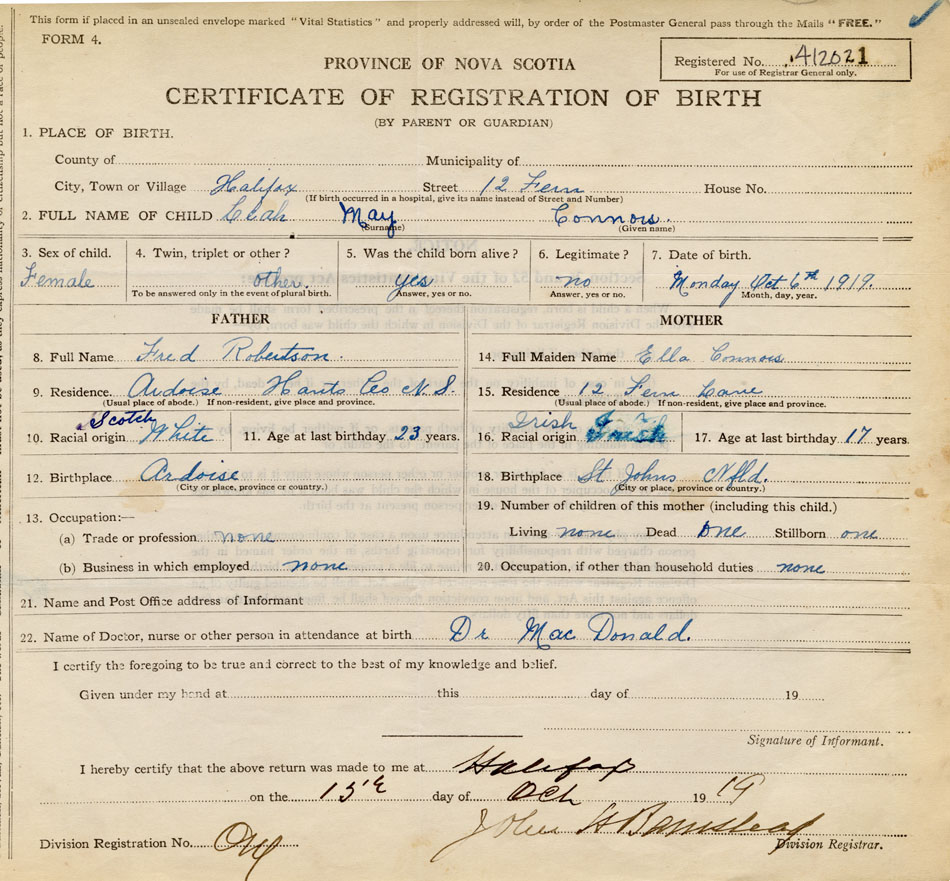 Nova Scotia Archives — https://archives.novascotia.ca/vital-statistics/birth/?ID=399238