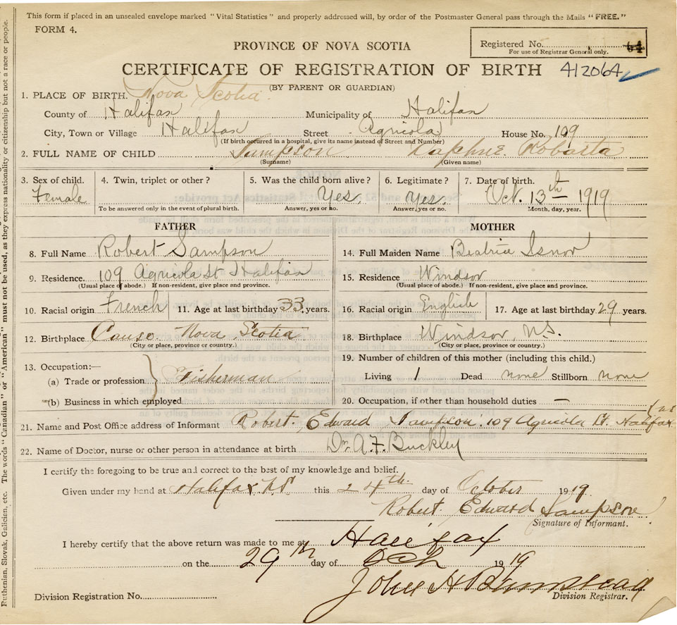 Nova Scotia Archives — https://archives.novascotia.ca/vital-statistics/birth/?ID=399280