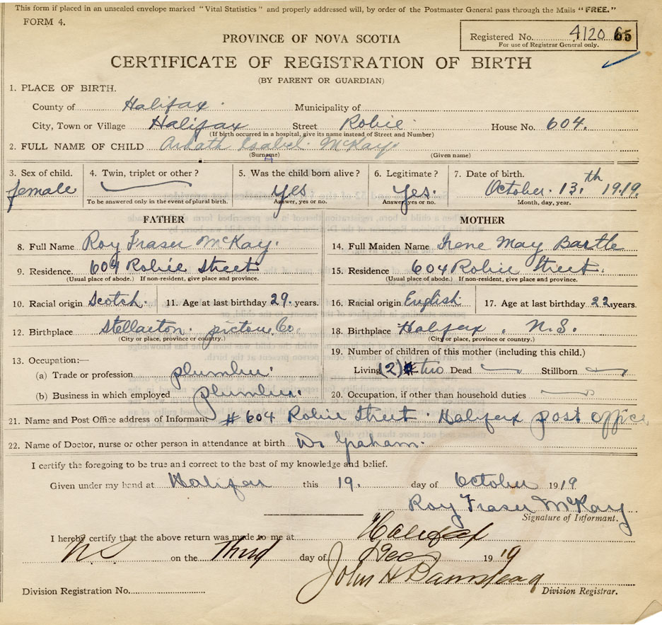 Nova Scotia Archives — https://archives.novascotia.ca/vital-statistics/birth/?ID=399281