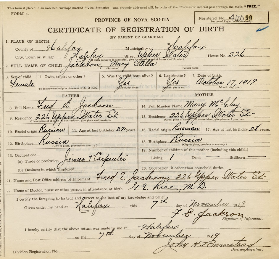 Nova Scotia Archives — https://archives.novascotia.ca/vital-statistics/birth/?ID=399306