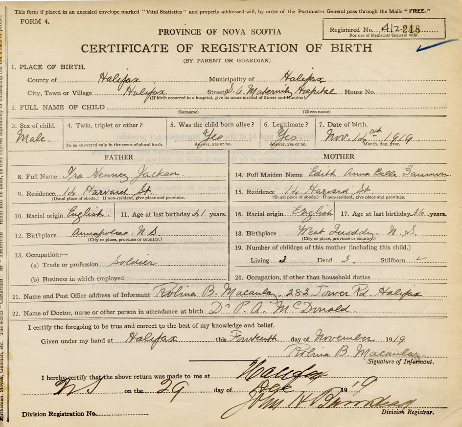 Nova Scotia Archives — https://archives.novascotia.ca/vital-statistics/birth/?ID=399461