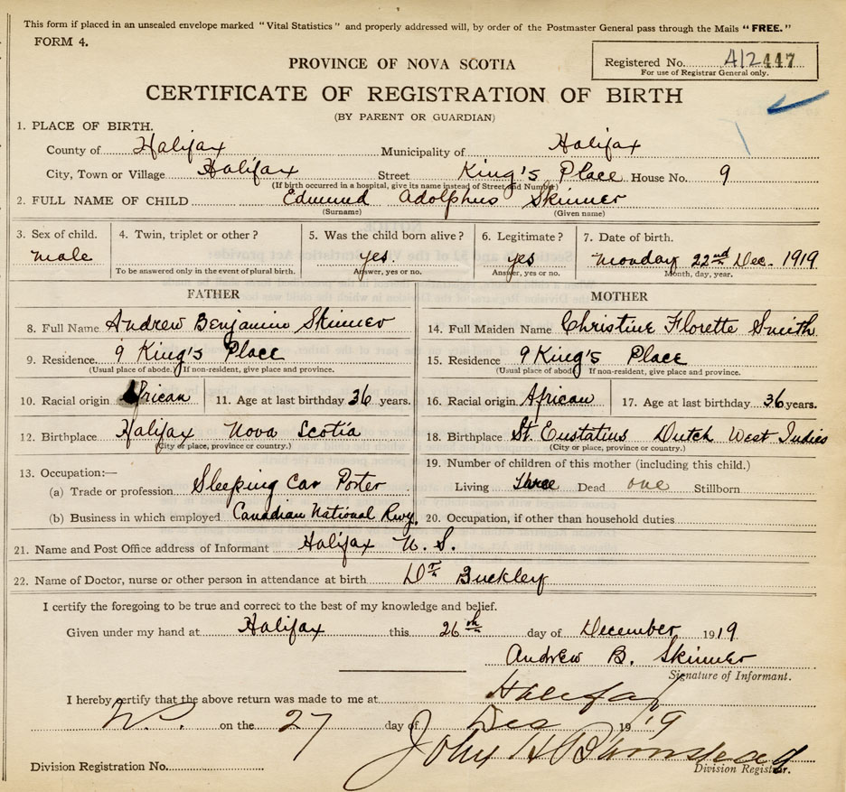 Occupation of Father at Birth of child Sleeping car porter Place of birth of Father Halifax
