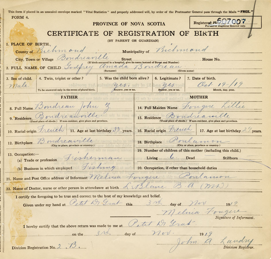 2. FULL NAME OF CHILD Boudreau, Godfrey Amedée