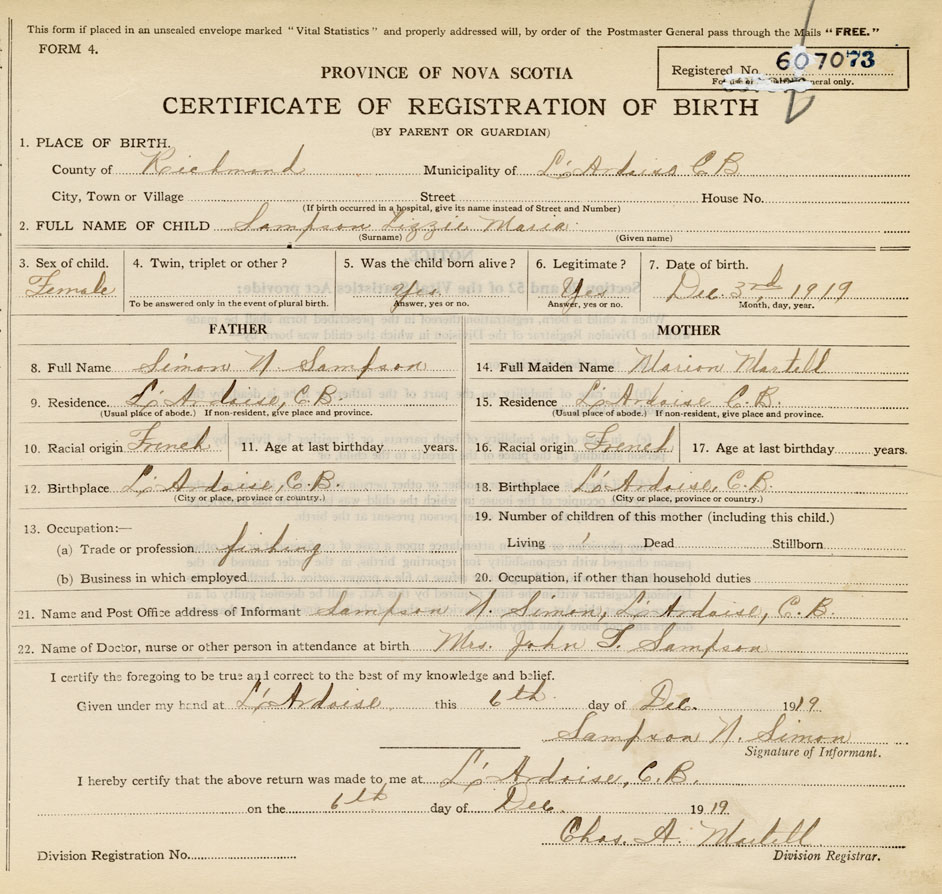 Nova Scotia Archives — https://archives.novascotia.ca/vital-statistics/birth/?ID=400073