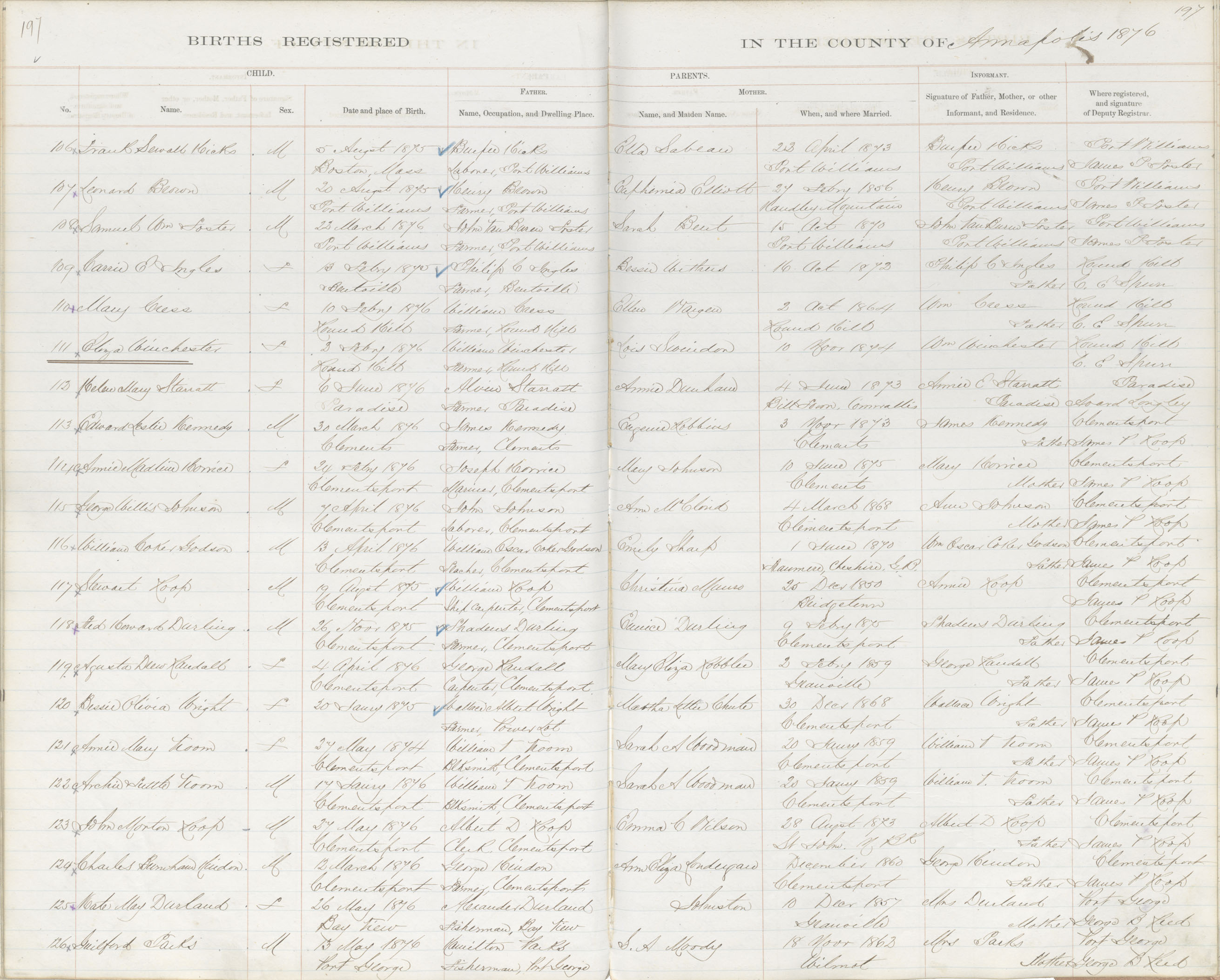 Birth Registration: Year: 1876 book: 1801 page: 197 number: 126