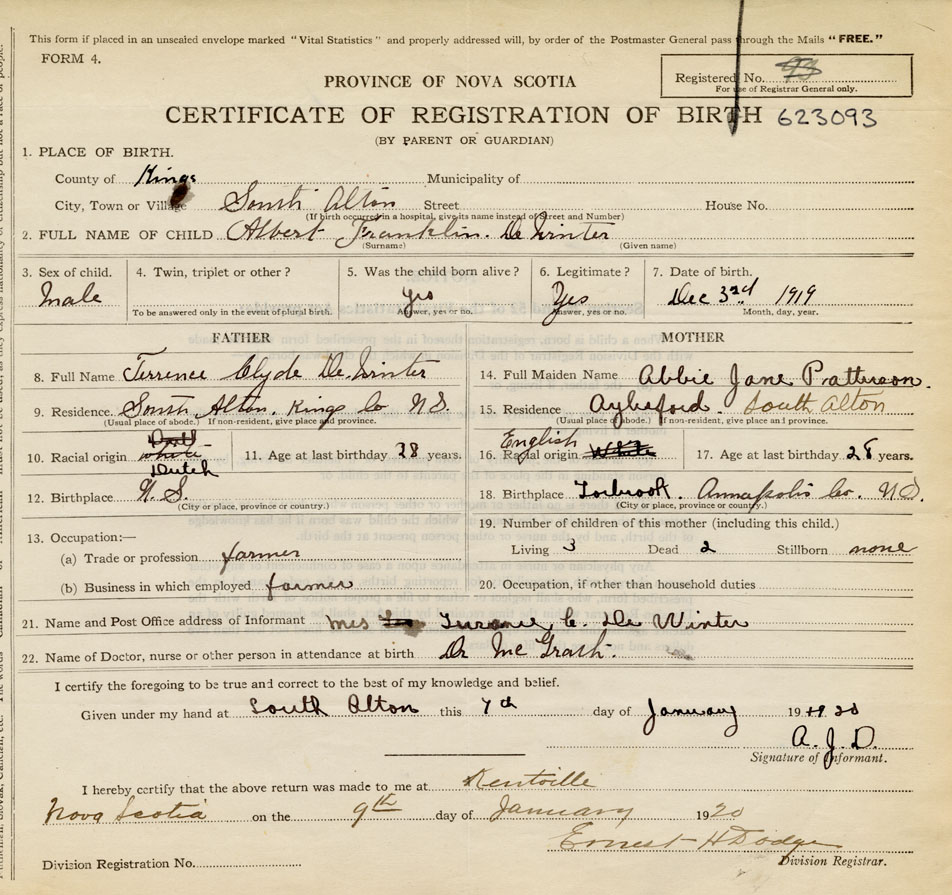 18. Birthplace Torbrook, Annapolis Co., NS