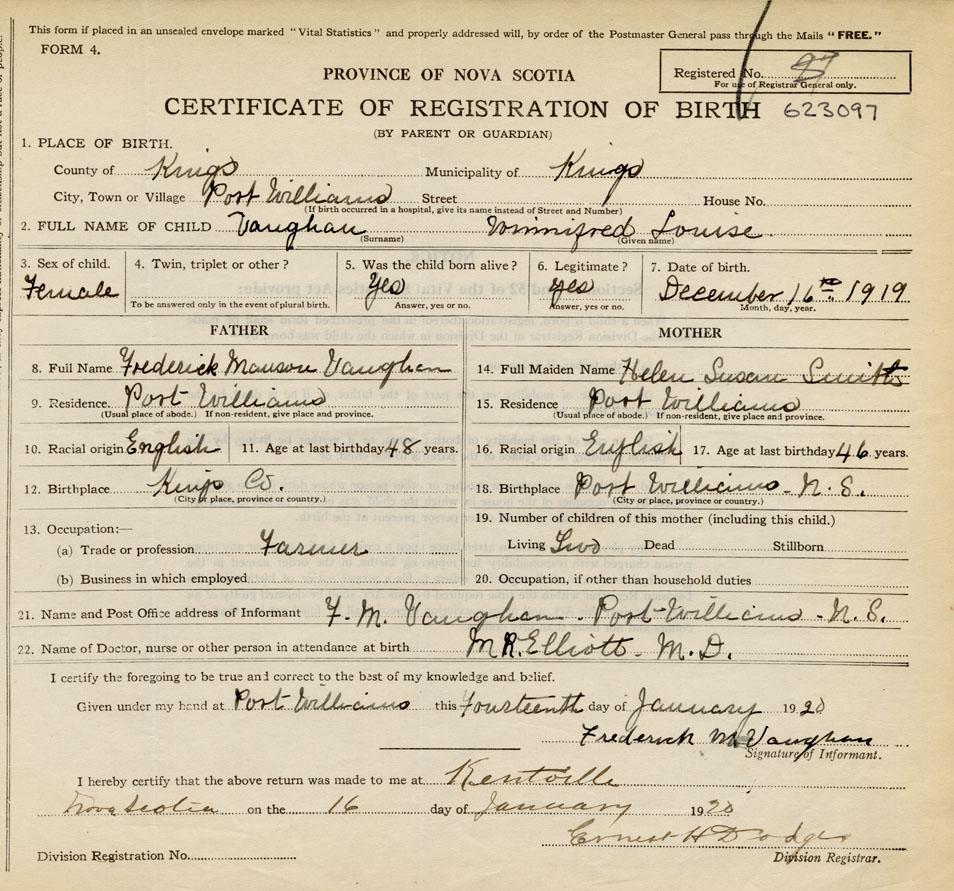 18. Birthplace Port Williams, Kings Co., NS