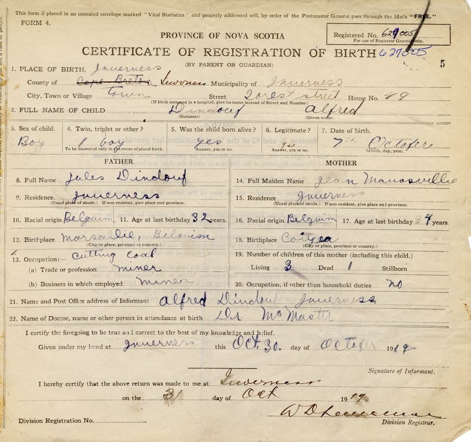 21. Name and Post Office address of Informant Alfred Dindouf Inverness, NS