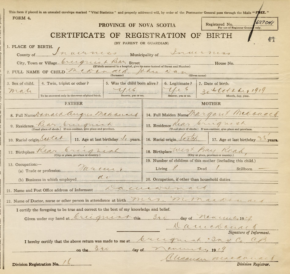 Nova Scotia Archives — https://archives.novascotia.ca/vital-statistics/birth/?ID=400715