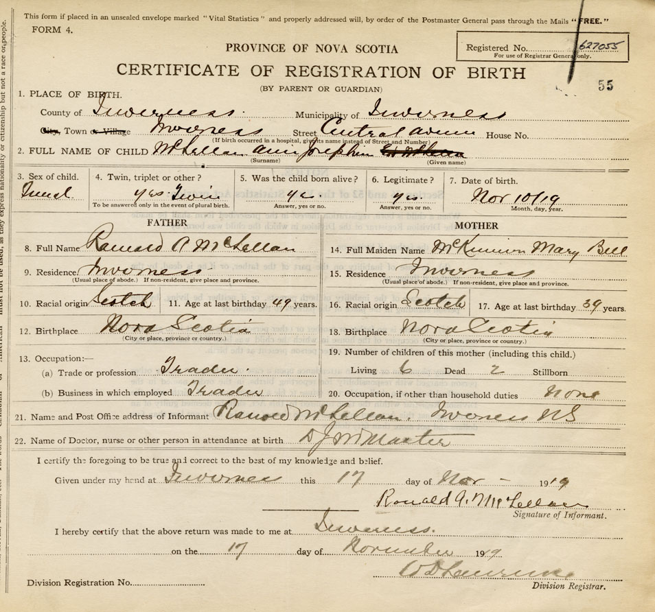 Nova Scotia Archives — https://archives.novascotia.ca/vital-statistics/birth/?ID=400729