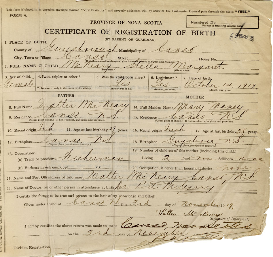 21. Name and Post Office address of Informant Walter McNeary Canso, Guysborough Co., NS
