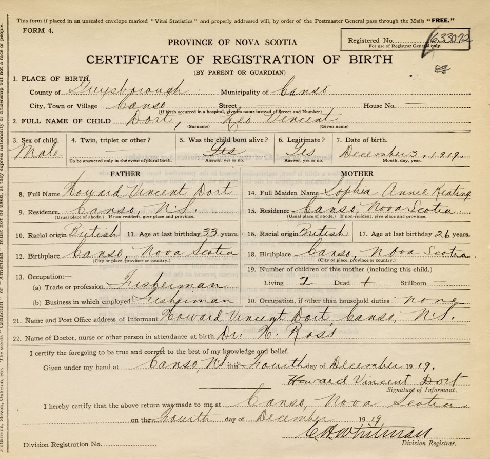 21. Name and Post Office address of Informant Howard Vincent Dort Canso