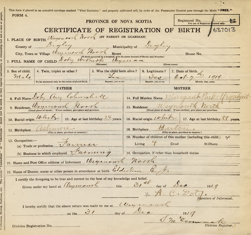 Nova Scotia Archives — https://archives.novascotia.ca/vital-statistics/birth/?ID=401067
