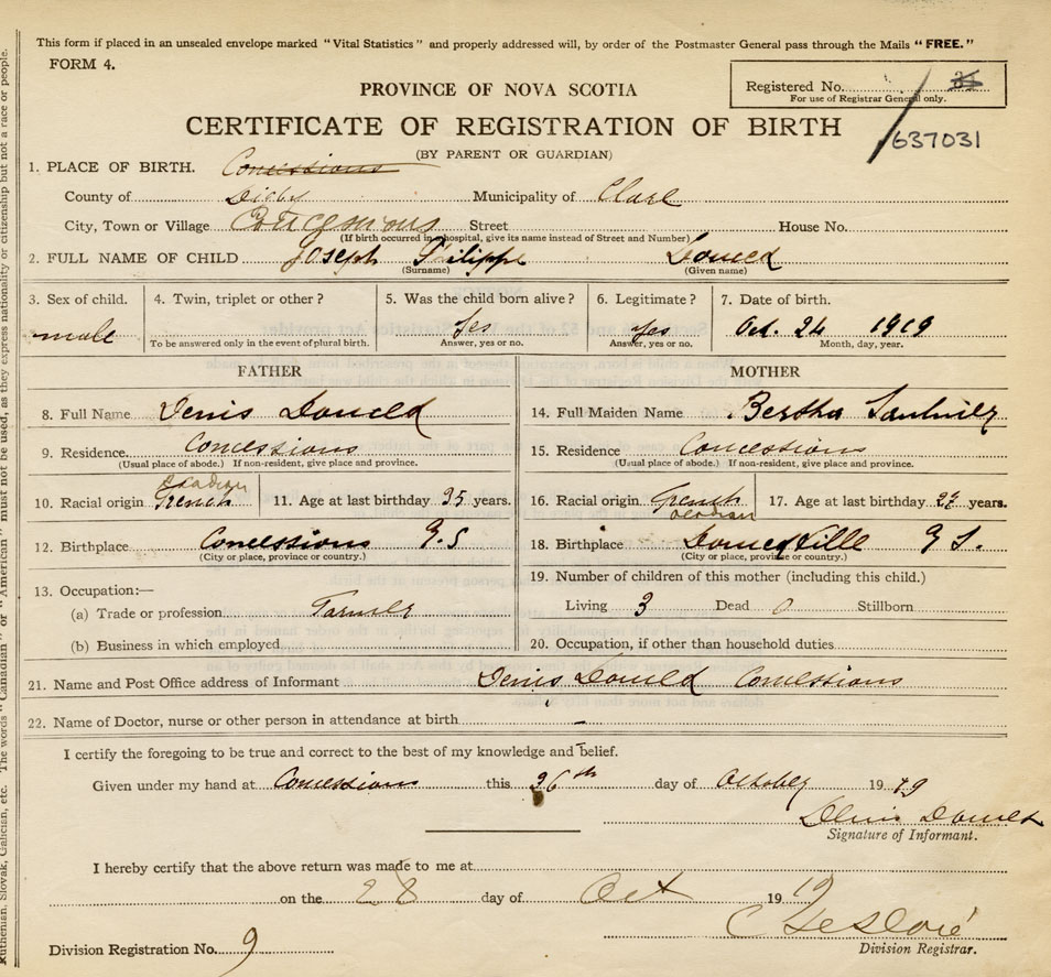 Nova Scotia Archives — https://archives.novascotia.ca/vital-statistics/birth/?ID=401085