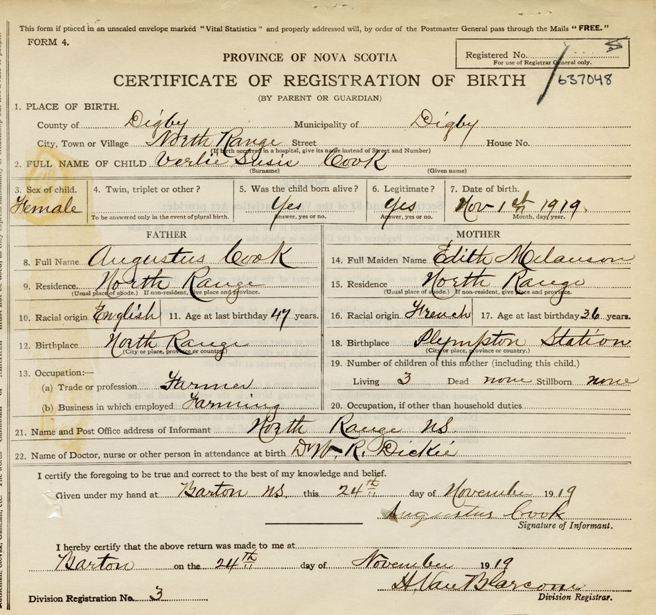 Nova Scotia Archives — https://archives.novascotia.ca/vital-statistics/birth/?ID=401102
